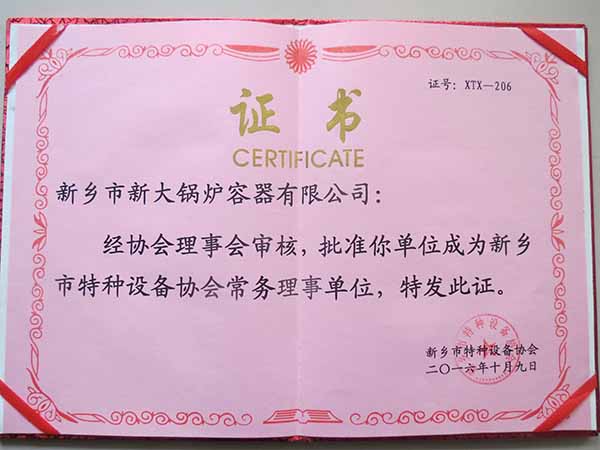 恭喜新鄉(xiāng)市新大鍋爐容器有限公司成為新興市特種設(shè)備協(xié)會(huì)常務(wù)理事單位